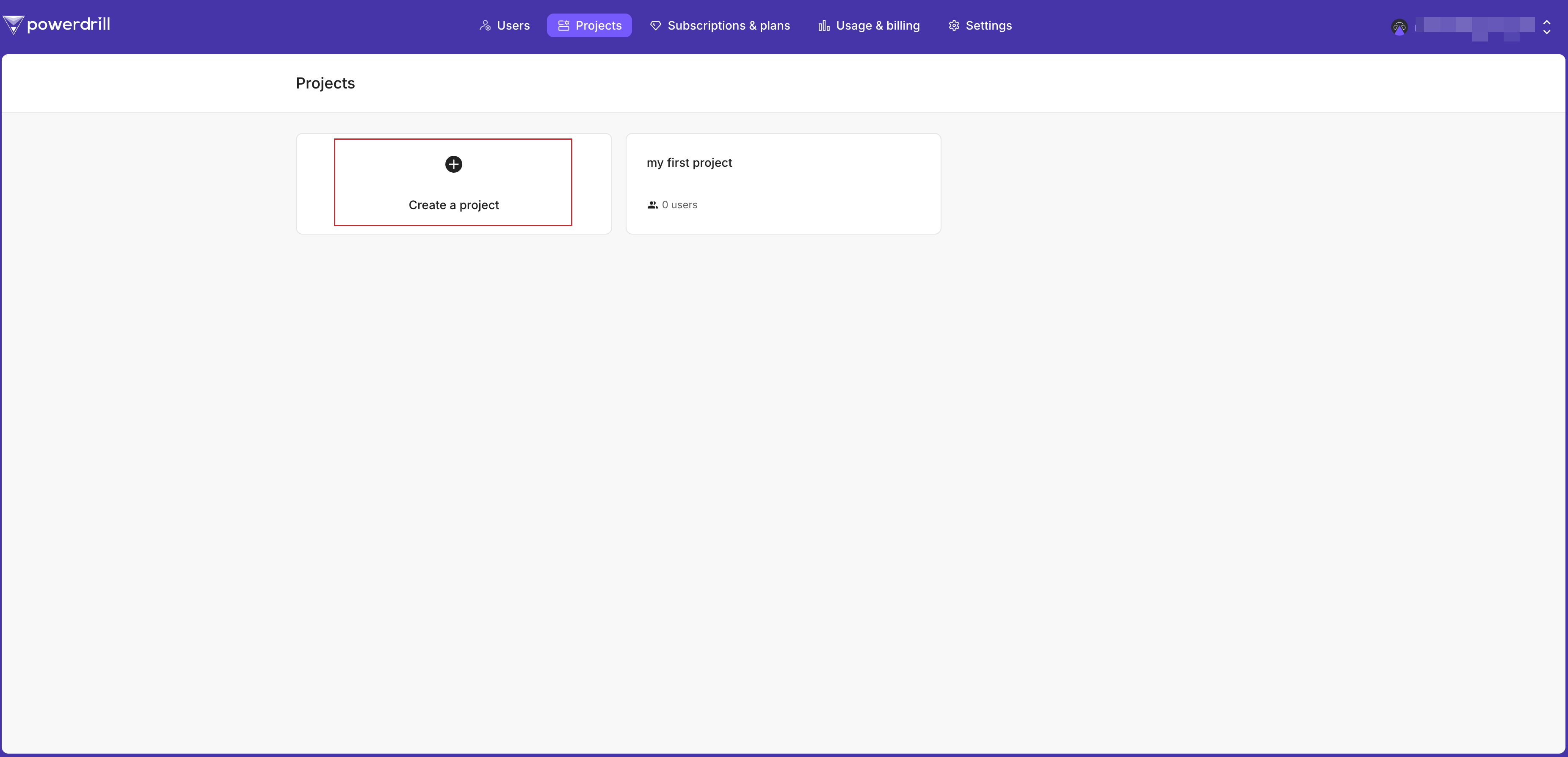 On the top navigation bar, select Projects. On the Projects page, click Create a project.