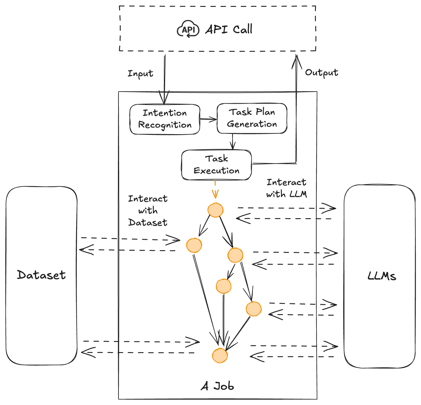 - Execute the task, where Powerdrill interacts with the user’s dataset to generate output aligned with the user’s intent, utilizing LLM capabilities.