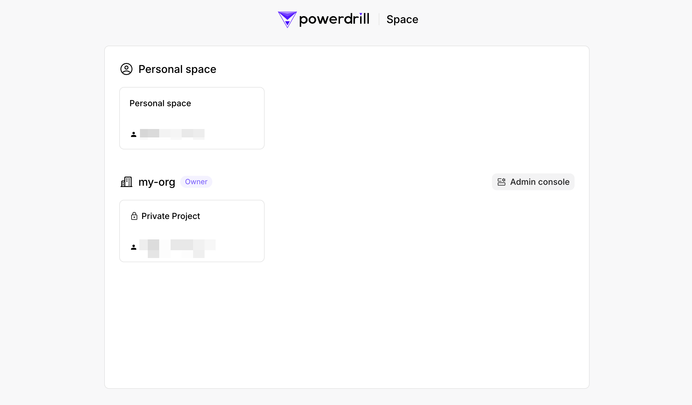 - From here, you can either click the Admin console to access your team’s management console or select the project you want to enter.